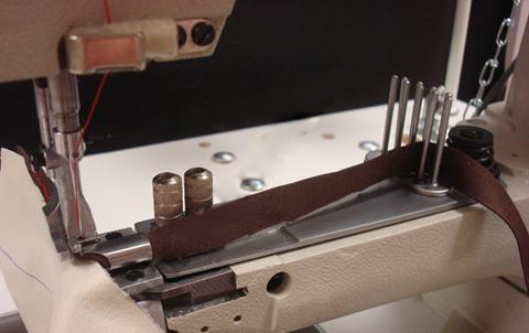 Машина с рукавной платформой применяется также для обработки изгибающихся и угловых частей в изделиях из кожи, брезента, джинсовой ткани. Устройство унисонной подачи материала значительно облегчает процесс пошива изделий, и позволяет выполнять высококачественные строчки на большой скорости.